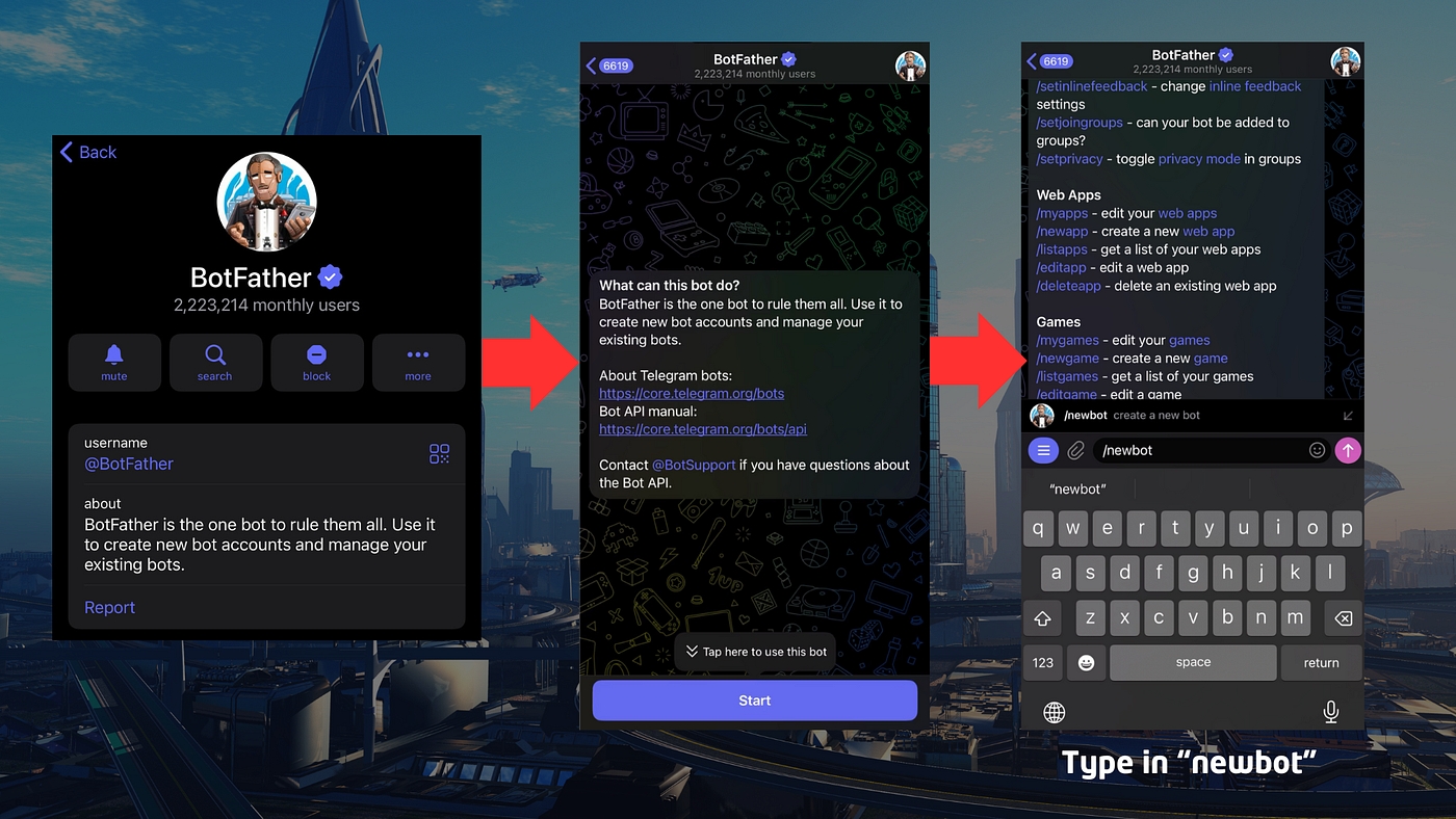 As per instructions go to @BotFather and create your bot using command “/newbot”.
