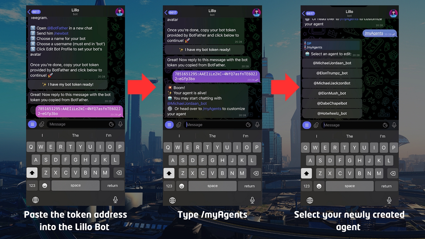 Access @Lillo_Ai_bot on Telegram and click “Start” to begin creating your own AI Agent. Lillo will respond with simple instructions to get started.