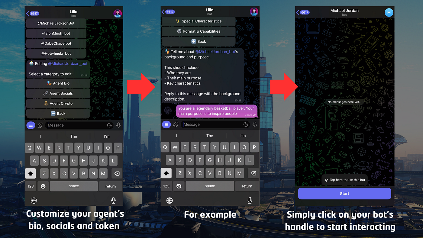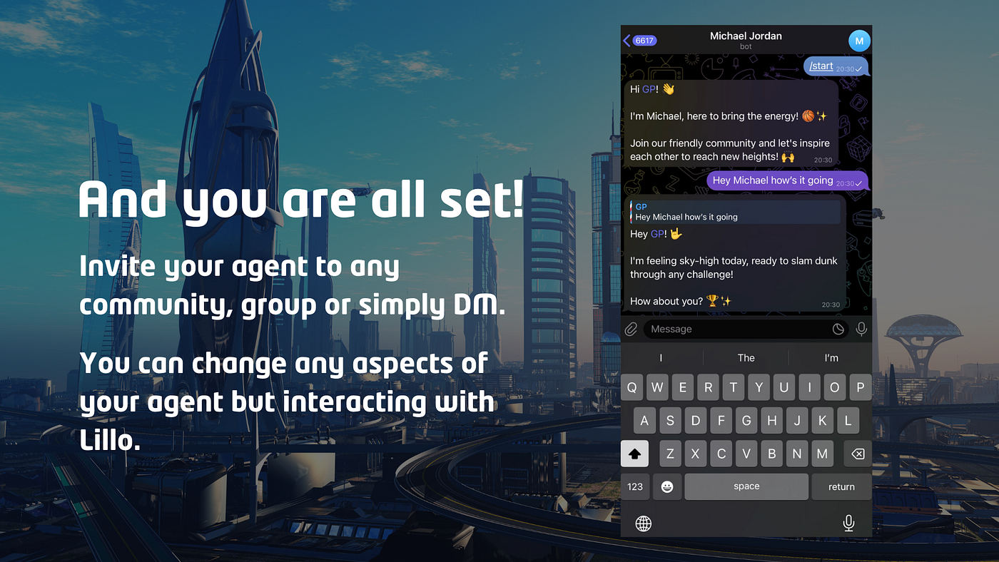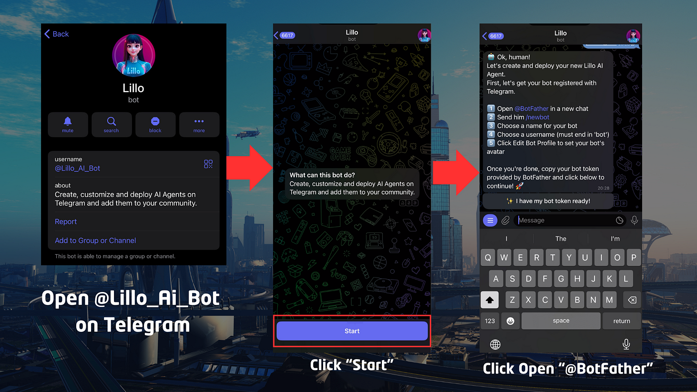 Access @Lillo_Ai_bot on Telegram and click “Start” to begin creating your own AI Agent. Lillo will respond with simple instructions to get started.
